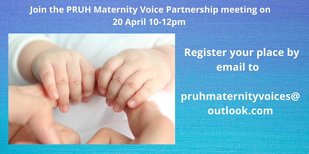 PRUH Maternity Voices Partnership (MVP) are holding their next service users virtual meeting on 20th April from 10am-12pm. This is a local partnership made up of maternity services users/ representatives and maternity professionals that come together to review and contribute to the development of maternity care. If you would like to come and contribute or just listen please email pruhmaternityvoices@outlook.com and they will send you the online meeting link.