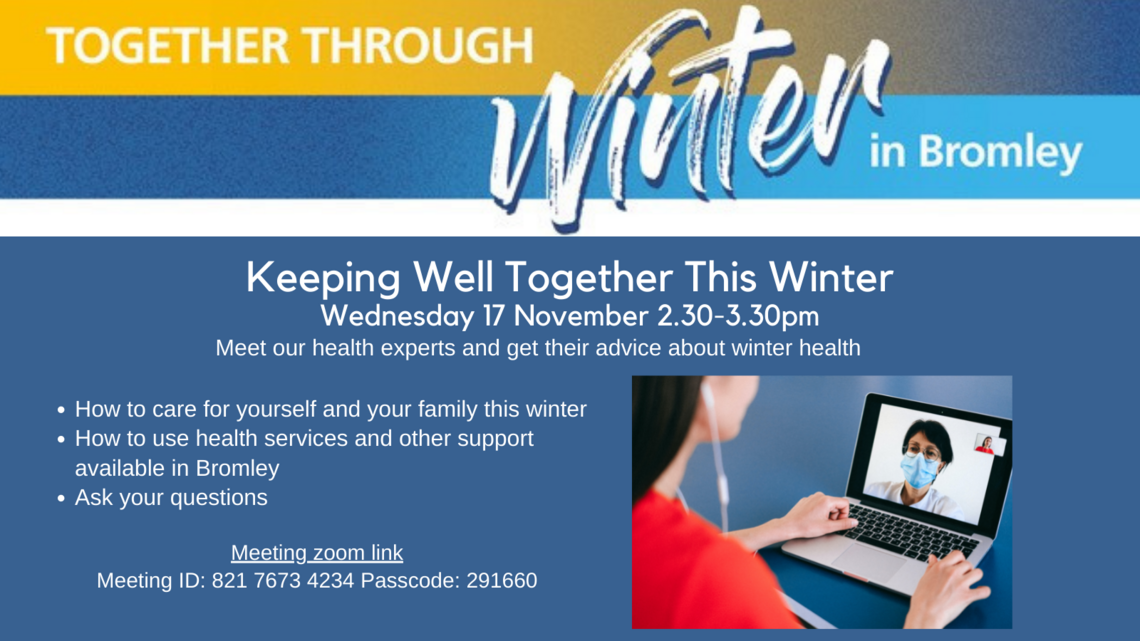 Join an online event on Wednesday 17th November, 2.30-3.30pm. Meet health experts and get their advice about winter health: