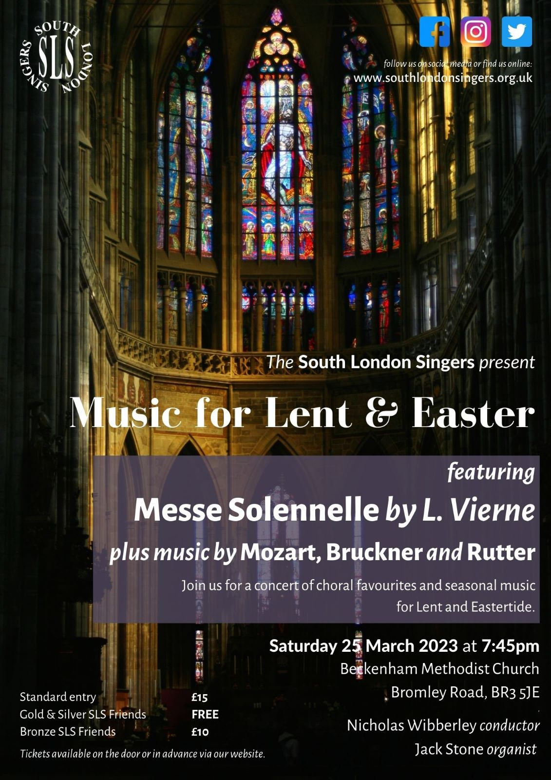 Join the South London Singers for an evening of choral classics at Beckenham Methodist Church on 25th March 2023.