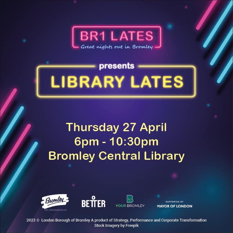BR1 Lates premiers in and around Bromley Central Library on Thursday 27th April. The event will run from 6pm - 10.30pm. With a silent disco, cocktail master classes, street food vendors, Lego for adults, celebrity book readings, musical performances and more, the event will be offering exciting activities you wouldn’t usually expect to find at the library, so come and explore and have fun!
