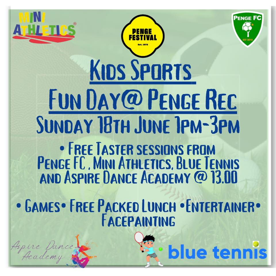 Free taster sessions from Penge FC, Mini Athletics, Blue Tennis and Aspire Dance Academy @ 13:00