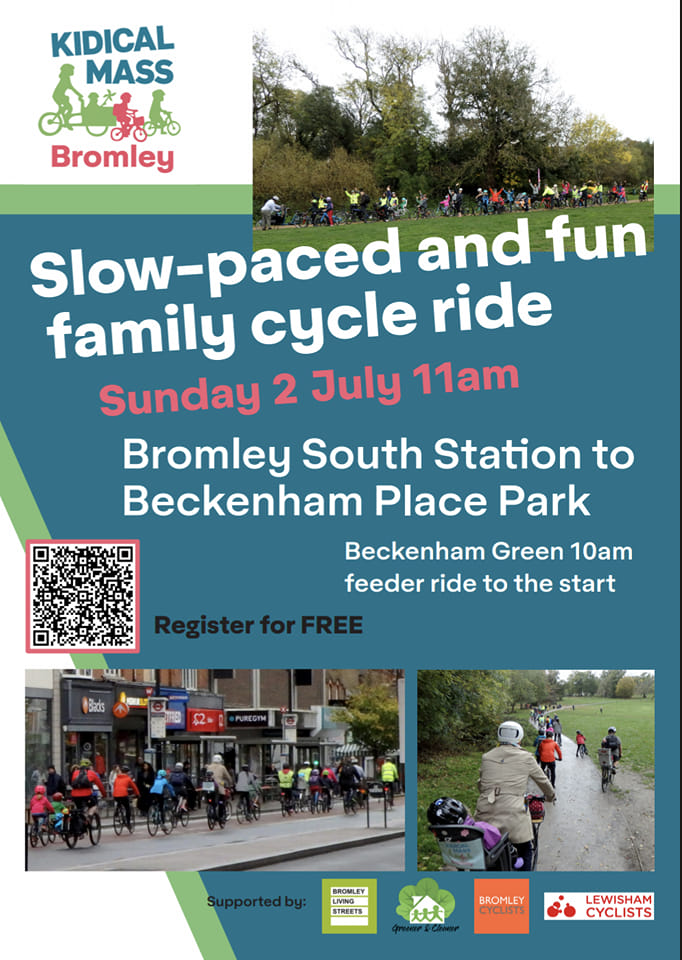 Join Kidical Mass Bromley for a family-friendly cycle ride to celebrate cycling and show that we want to cycle and we need safe spaces to do so. This is a gentle cycle ride, for all ages and abilities with the aim to enjoy cycling as a group, improve confidence in cycling. And, most importantly, to have fun!