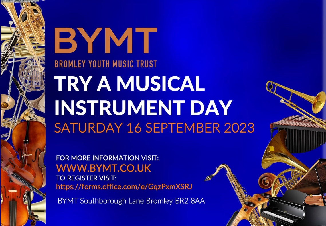 Bromley Youth Music Trust will be opening its doors on Saturday 16 September to welcome families with children in school years 1-8. This is your chance to come along, try the instruments, talk to the teachers & make some noise!