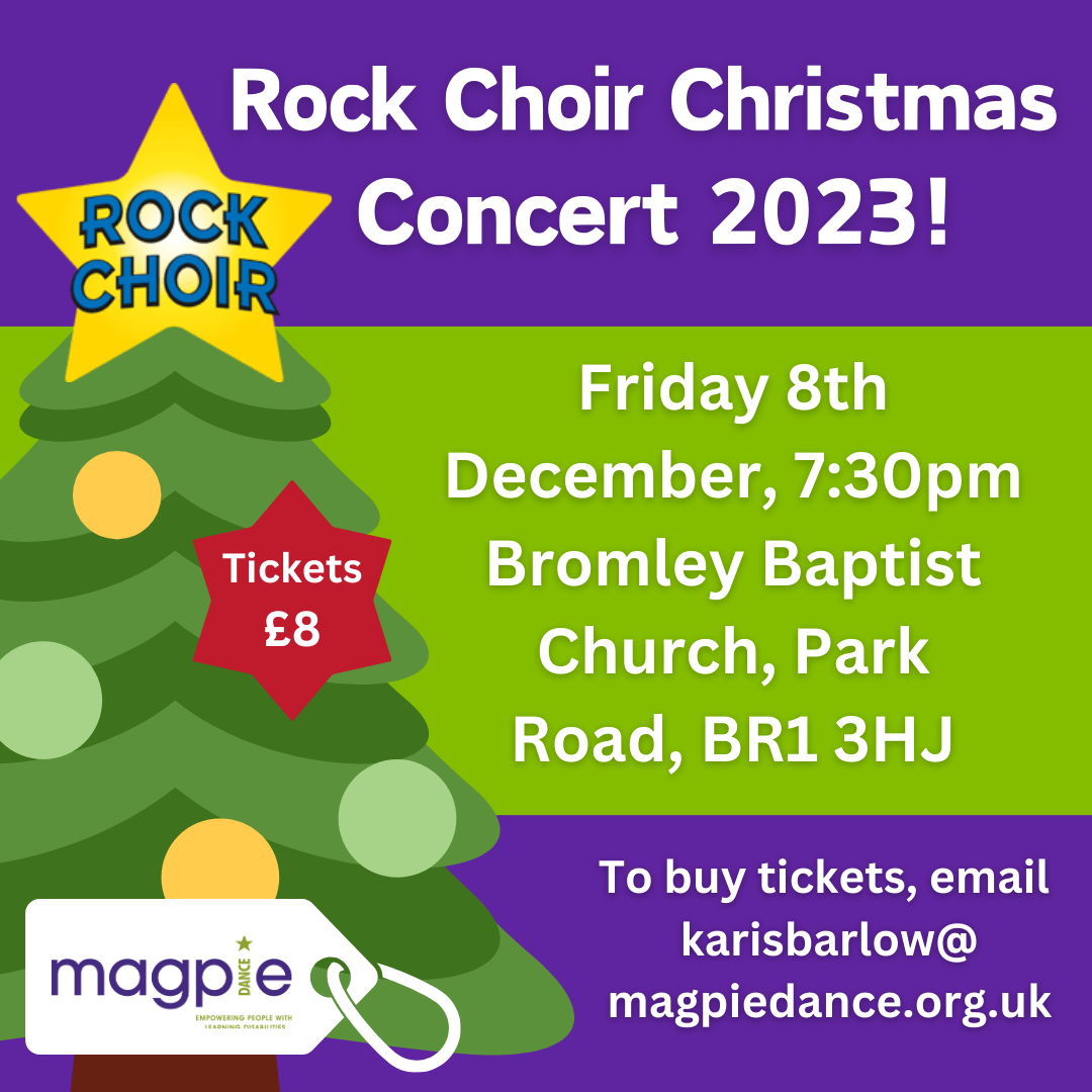 It’s that time of year again! Rock Choir is teaming up with Magpie Dance this Christmas to raise money and spread festive cheer! On the 8th of December, we are hosting the amazing Bromley and Petts Wood Rock Choirs at Bromley Baptist Church, who will be performing festive classics and contemporary hits!