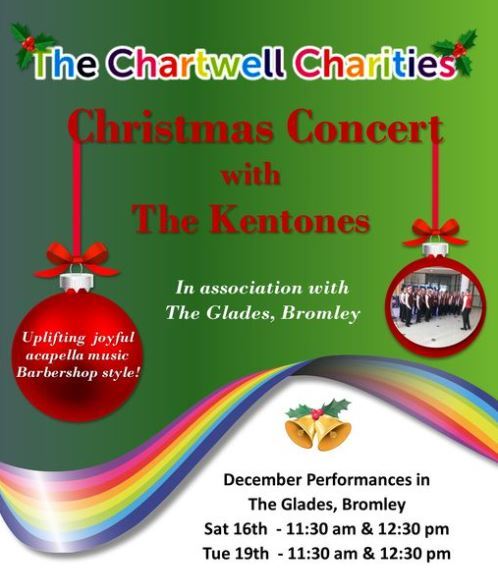 Join The Chartwell Charities for a magical Christmas Concert with The Kentones at The Glades, Bromley! Immerse yourself in the Christmas spirit with beautiful festive songs and classic carols.