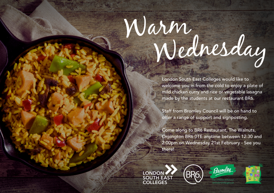 London South East Colleges would like to welcome you in from the cold to enjoy a plate of vegetable lasagne or chicken fried rice made by the students at their restaurant in BR6.