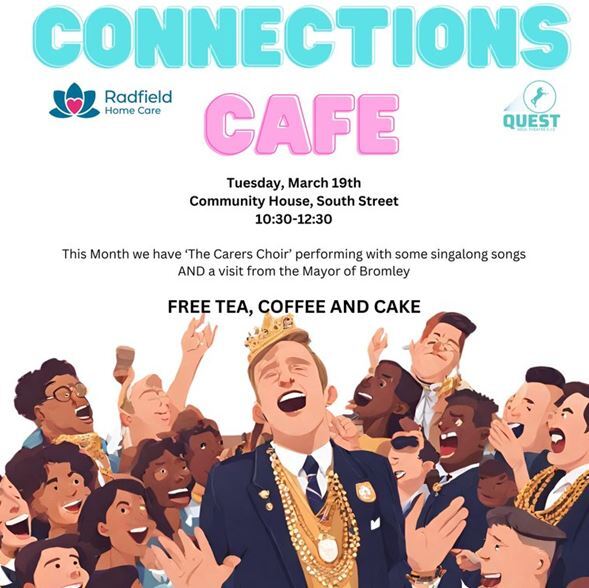 Working in connection with Radfield Home Care, Quest Soul Theatre are offering a FREE monthly cafe, aiming to bring the Bromley Community closer together. Open to everyone!