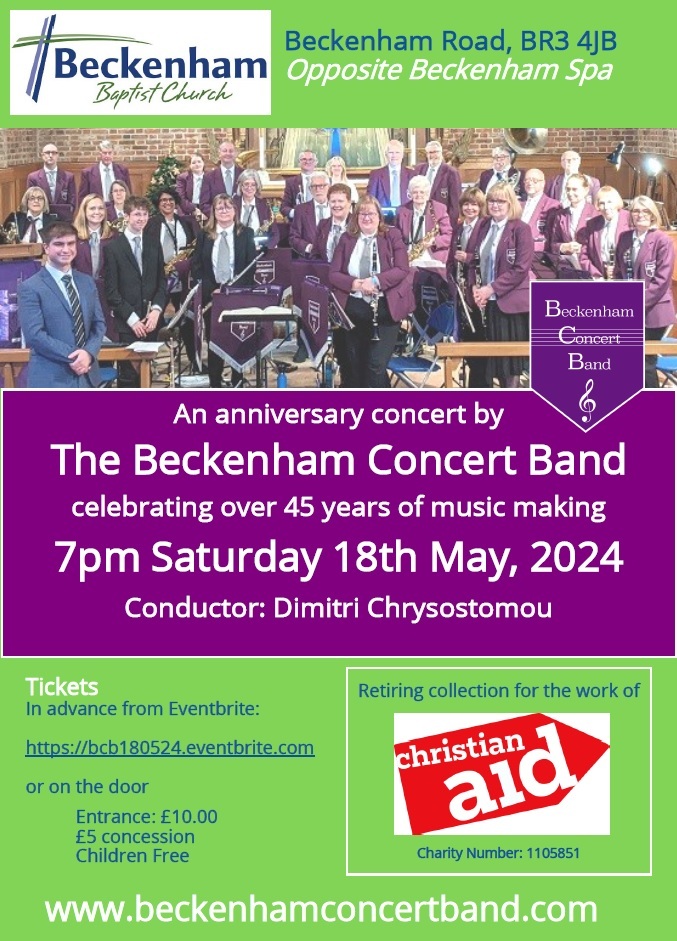 On 18th May 2024, the Beckenham Concert Band are performing an anniversary concert to celebrate over 45 years of music making.