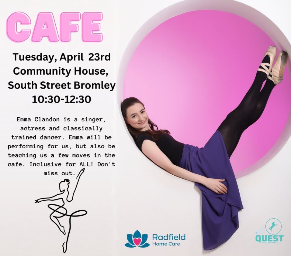 This month at the Connections Cafe, Emma Clandon, a Classically trained dancer and singer, will give a short performance and then teach some moves and exercises that we can all do. Also suitable for people who have mobility issues.