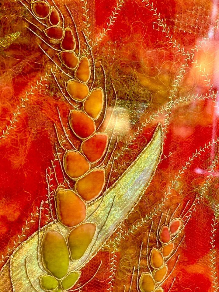 Jane describes herself: “I’m a textile artist in Worthing, West Sussex. I print and dye my own fabrics, and then create art with a combination of hand-stitch and sewing machine”. If you went along to Ramster Embroidery exhibition this year, you will have seen her beautiful work – come along to Bromley Embroiderers to see some more and hear about how she creates her pieces.