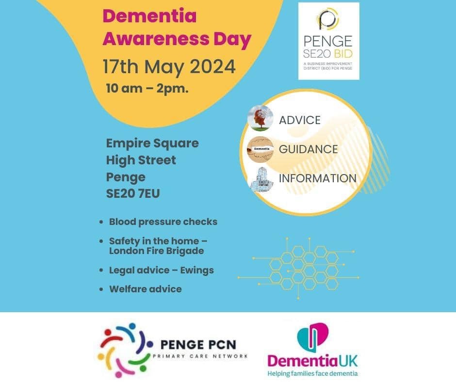 Dementia Day at Empire Square on May 17th. The first Dementia Awareness Day in Penge! Let's come together to raise awareness and support those affected by dementia.
