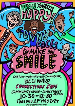 This month, Connections Cafe's guest is Beci Ward, a local illustrator. During the session, Beci will be helping the attendees create an art piece. Beci designed this month’s poster. All ages and abilities are welcome. The Cafe is inclusive, dementia and autistic friendly.
