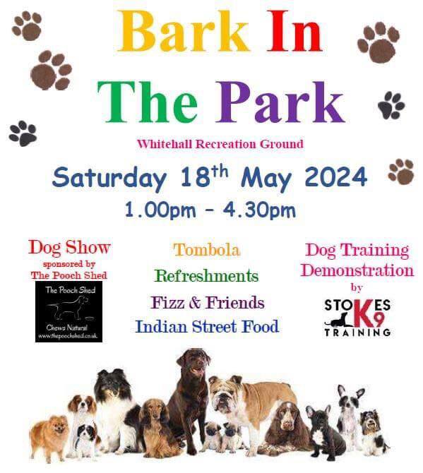 Friends of Whitehall Recreation Ground are organising a Dog show and Dog training demonstration taking place at Whitehall Recreation Ground on Saturday 18th May 2024 from 1pm to 4.30pm.