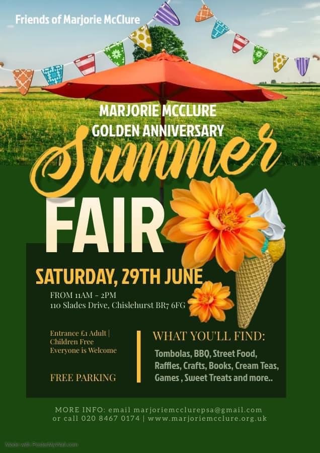 Continuing with the 50 year celebrations of Marjorie McClure, They welcome you all to come along and join the family fun at the summer fair on: