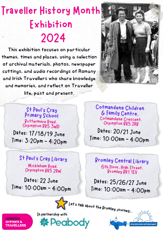 This exhibition focuses on particular themes, times and places, using a selection of archival materials, photos, newspaper cuttings, and audio recordings of Romany and Irish Travellers who share knowledge and memories, and reflect on Traveller life, past and present.