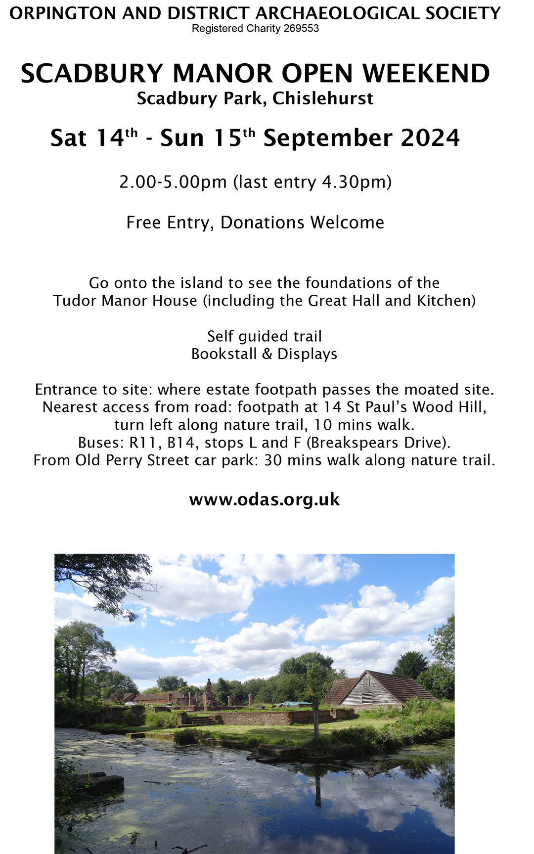 An open weekend at Scadbury Manor organised by the Orpington and District Archaeological Society (ODAS).