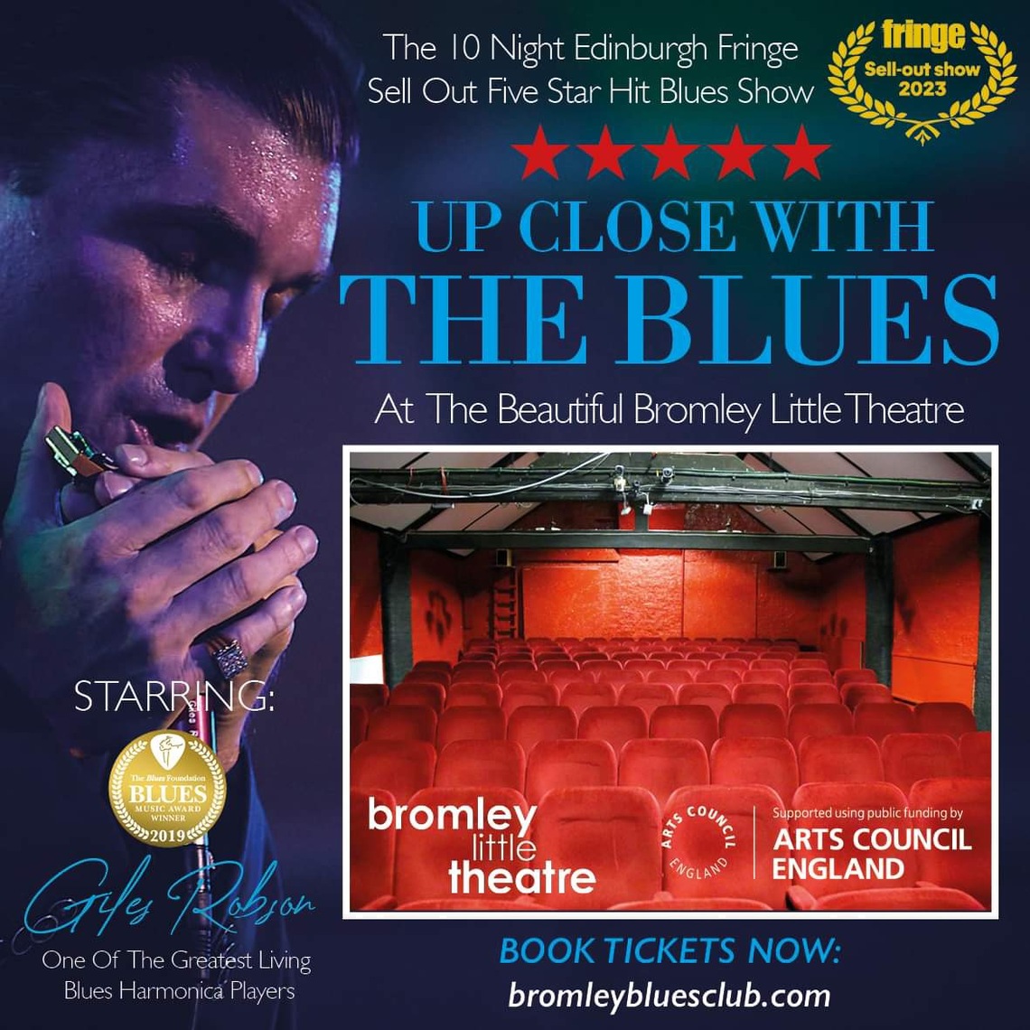The Bromley Blues Club are proud to welcome the acclaimed 10 - night sell out Edinburgh Fringe 5 star smash hit blues show “Up Close With The Blues” with internationally acclaimed blues star Giles Robson the man Hohner Harmonicas calls “ “One of the finest blues harmonica virtuosos in the world, an acclaimed master showman and singer”. The only UK blues artist after Eric Clapton and Peter Green to win a coveted Blues Music Award in Memphis and the first UK/EU blues artist to appear on Chicago’s legendary Alligator Records.