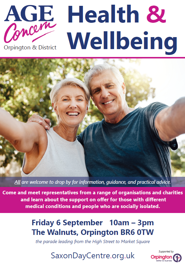 Join Age Concern Orpington & District for their Health and Wellbeing event on Friday 6th September, 10.00am - 3.00pm at The Walnuts, Orpington BR6 0TW.