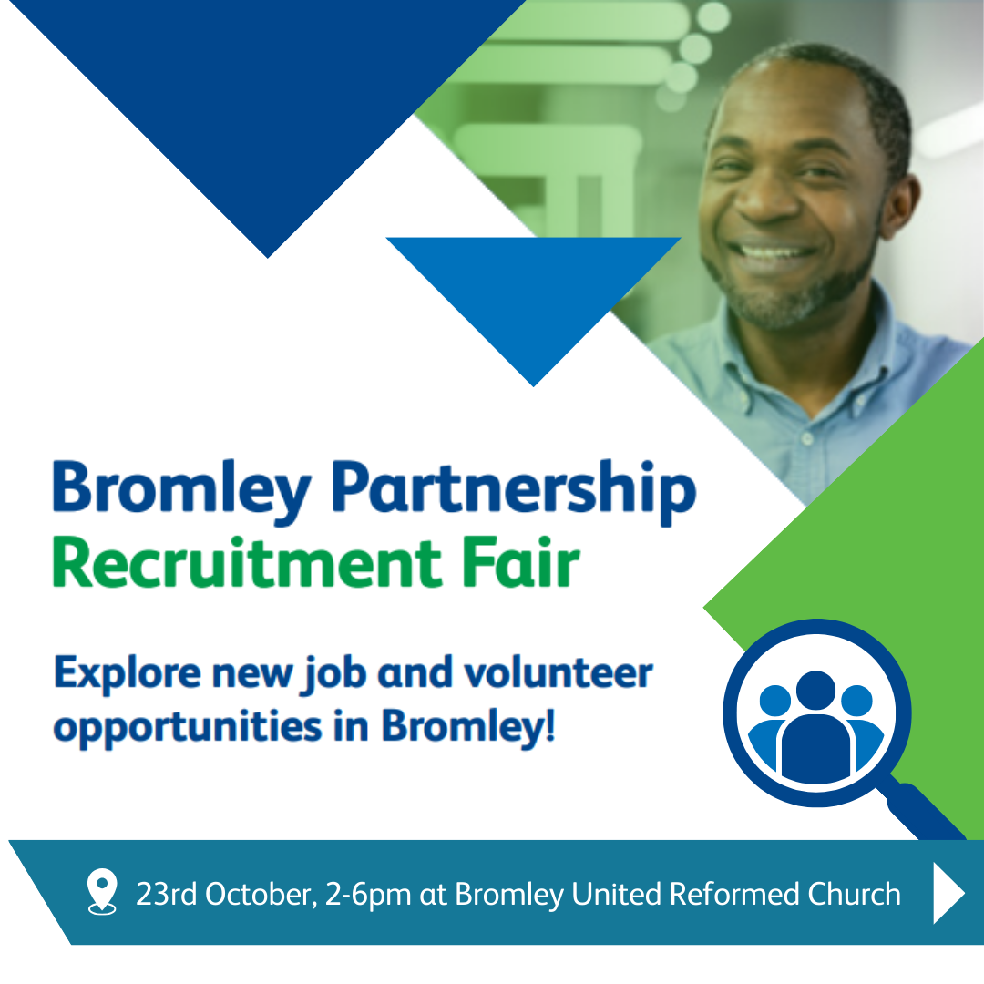 To help Bromley residents find meaningful and rewarding work, a Bromley Partnership Recruitment Fair will take place on Wednesday 23 October 2 – 6pm at the Bromley United Reformed Church.