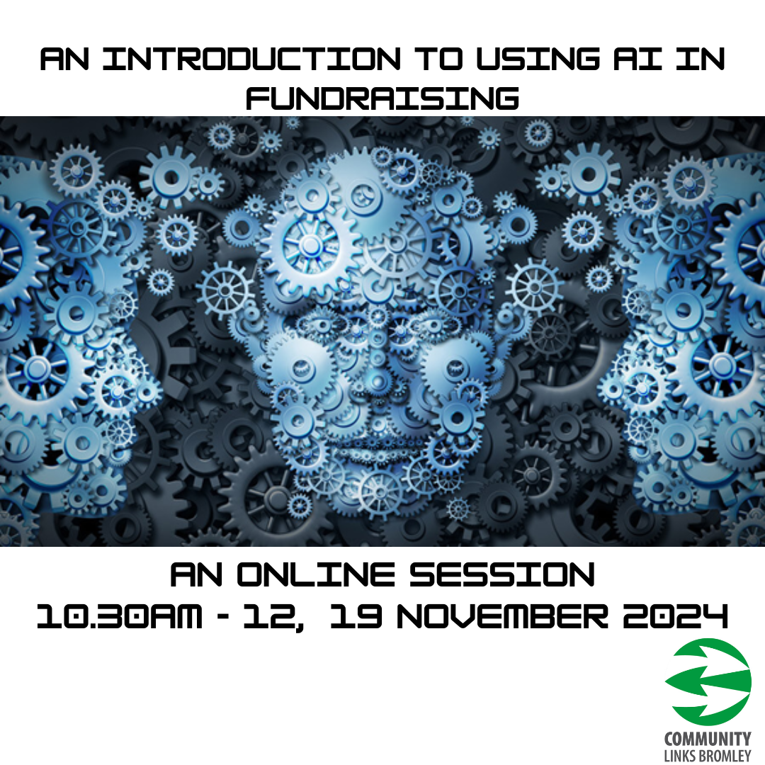 This is an introductory level session for the Bromley voluntary sector designed to build your confidence and give you practical tips that you can use. It will be particularly useful for smaller organisations and organisations with limited resources. Join us for an online event where we will explore fundraising with artificial intelligence. Learn how AI can assist your fundraising efforts and help you reach your goals faster and more effectively. Whether you're new to fundraising or looking to enhance your skills, this event is perfect for you.
