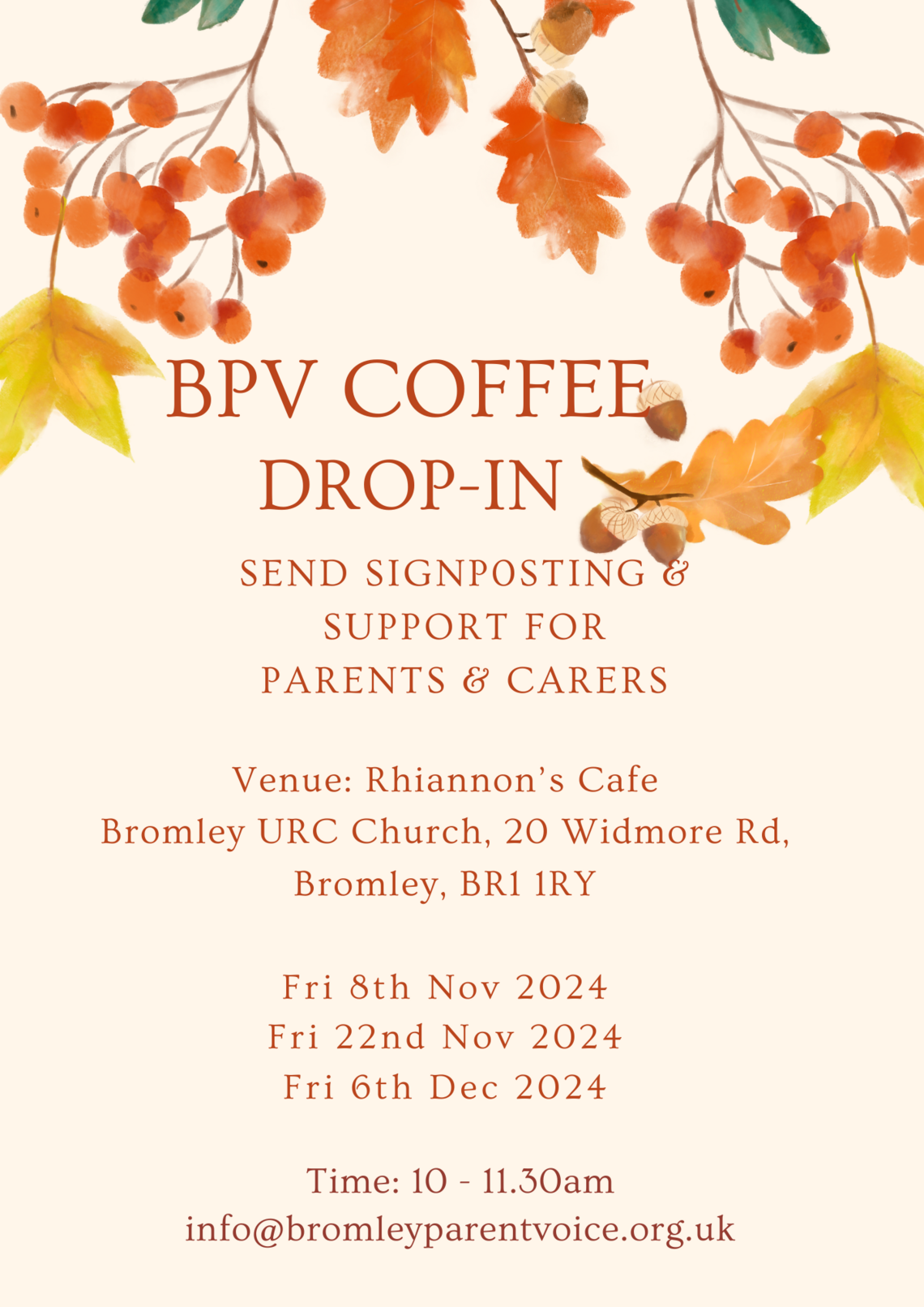 Bromley Parent Voice Coffee Drop-In aim is to provide SEND signposting an support for parents and carers.