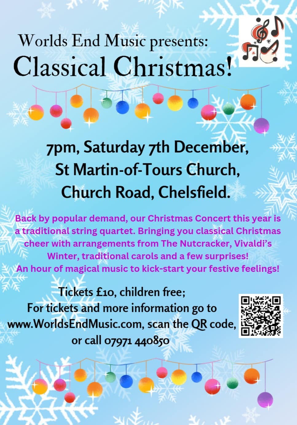 It’s very early this year, but let’s get the Christmas cheer underway! Back by popular request, Worlds End Music have string quartet music fit to beat the winter blues. They’ll be playing arrangements of Christmas favourites such as Tchaikovsky’s Nutcracker, Vivaldi’s Winter and no doubt the odd carol or two. Join them for an hour of festive fun!