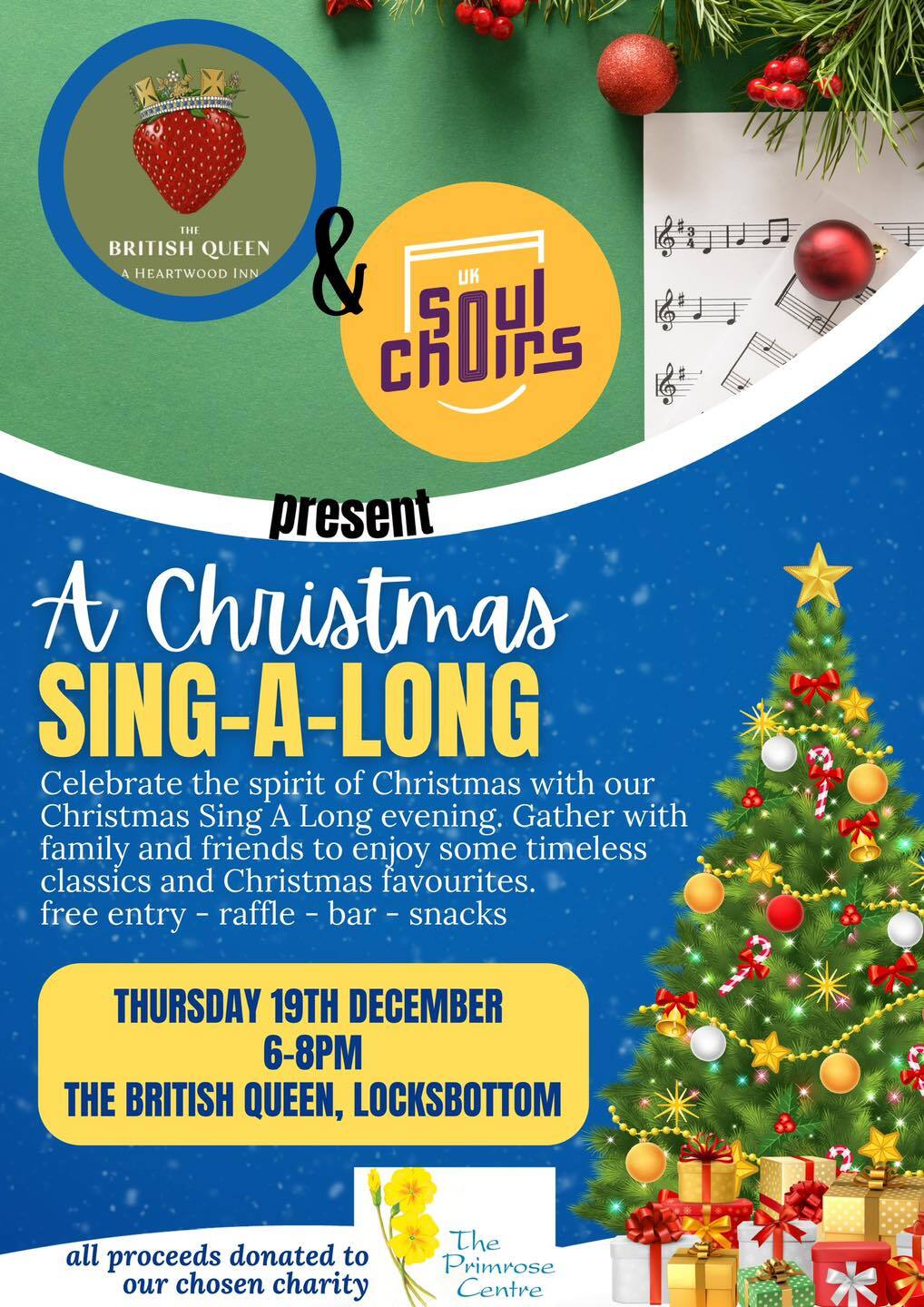 Hosted by fabulous partners The British Queen, in Locksbottom and with fabulous singers from Soul Choir. It’s a free event with a raffle to raise funds for the Primrose Centre. Come along, have a glass of mulled wine, sing a few of your favourite Christmas songs and raise money for a fabulous cause!