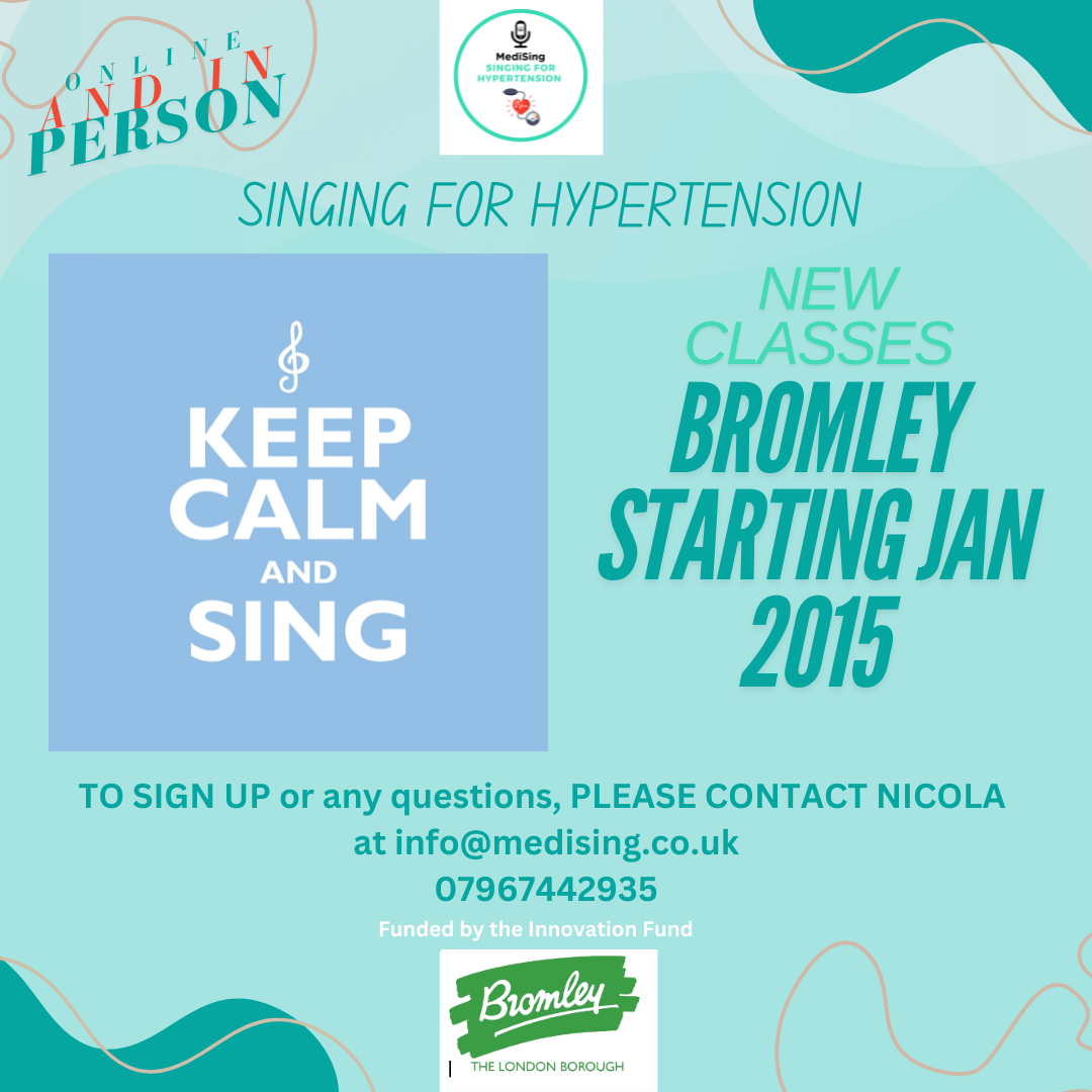 Medising is delighted to have won funding from Bromley Council to run a pilot of singing groups for people with hypertension.