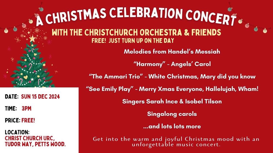 Christ Church Petts Wood, United Reformed Christmas concert on Sunday 15th December at 3pm! This is a free concert and hosted by their Orchestra with lots of friends!