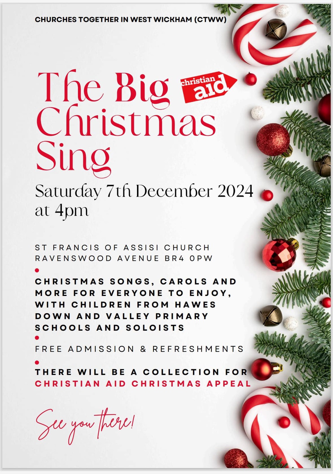 oin Churches Together in West Wickham (CTWW) on Saturday 7th December, 4.00pm at St Francis of Assisi church Ravenswood Avenue, BR4 OPW for their The Big Christmas Sing.