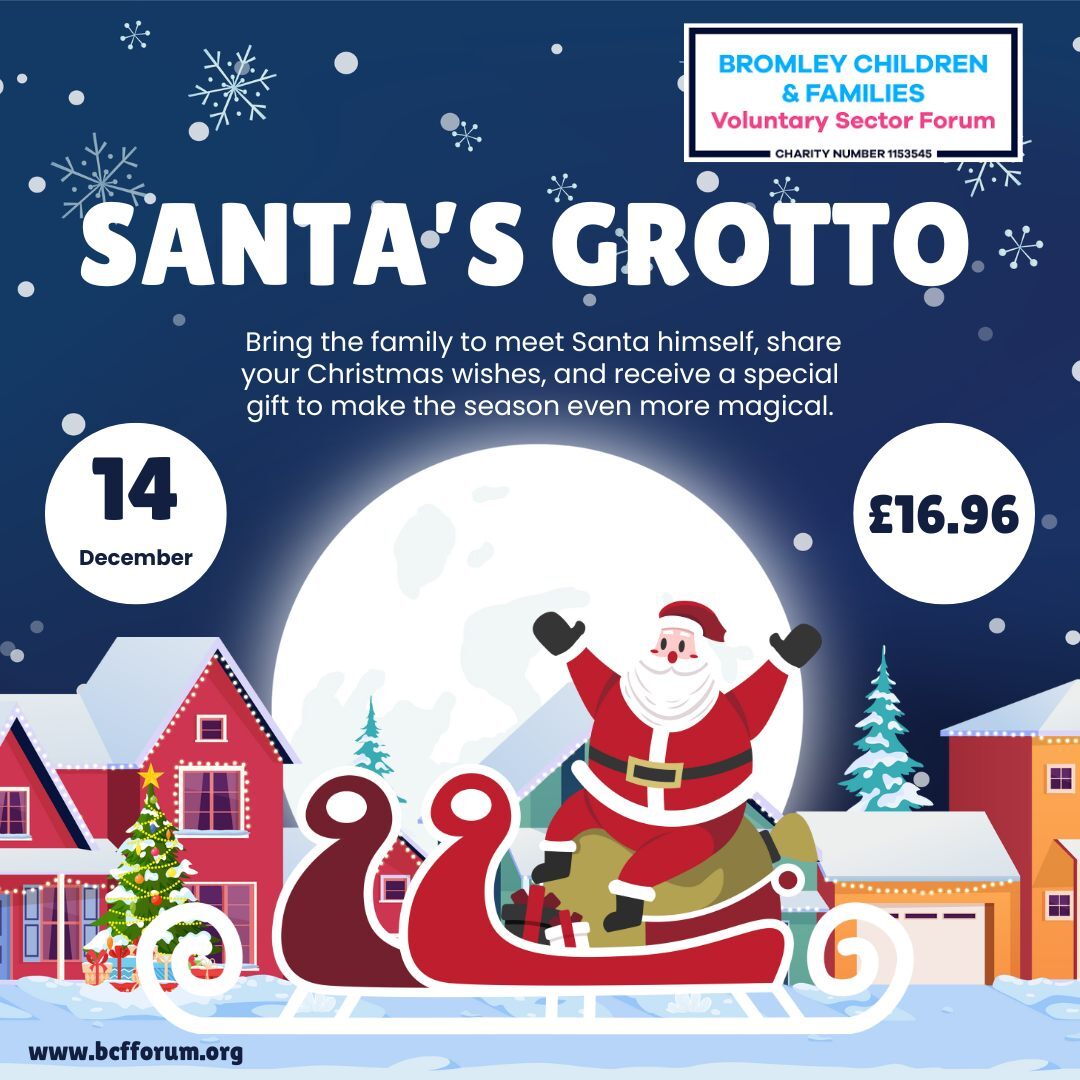Join Bromley Children & Families Voluntary Sector (BCFF) Forum on 14th December at Bromley Old Town Hall for a magical Christmas experience at Santa's Grotto! Take the family to meet Santa himself, share your Christmas wishes, and receive a special gift to make the season even more magical. With a festive atmosphere, a personal meet-and-greet with Santa, and surprises for every child, it’s the perfect way to create unforgettable holiday memories