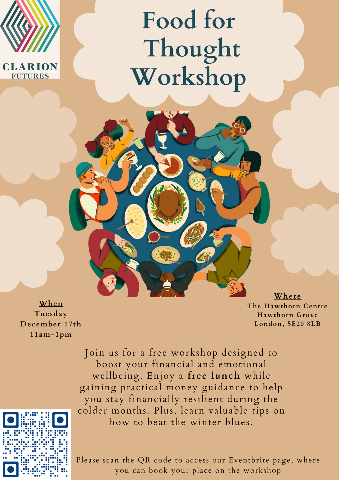 Join Clarion Futures for a warm and fun session where you'll enjoy free food while gaining practical tips to thrive this winter! Learn how to take charge of your budget, save smarter and lift your spirits during the colder months.
