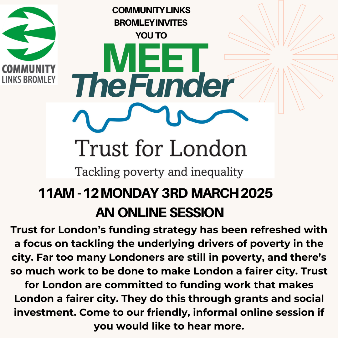 Trust for London’s funding strategy has been refreshed with a focus on tackling the underlying drivers of poverty in the city. Far too many Londoners are still in poverty, and there’s so much work to be done to make London a fairer city. Trust for London are committed to funding work that makes London a fairer city. We can do this through grants and social investment. Come to our friendly, informal online session if you would like to hear more.