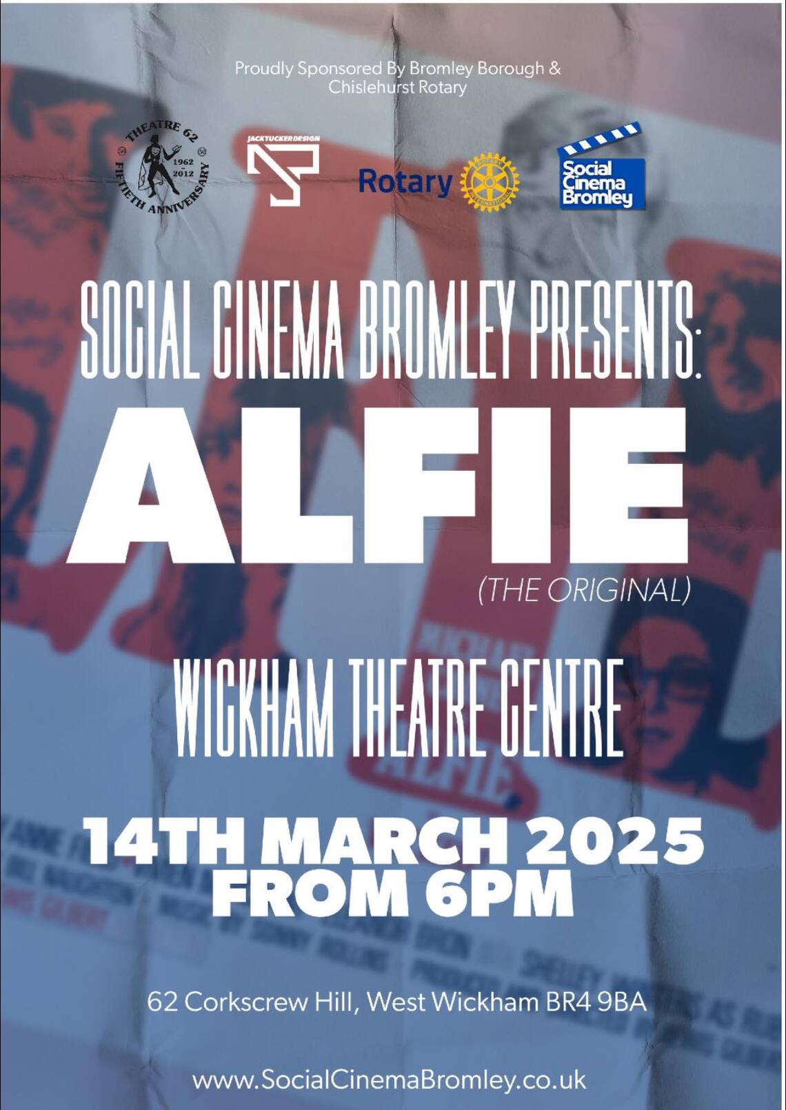 Join Social Cinema Bromley for a special screening of the classic 1966 film "Alfie", starring the legendary Michael Caine in his unforgettable role as the charming and carefree playboy. This timeless gem is a must-see for fans of classic cinema and those looking to experience a piece of film history.