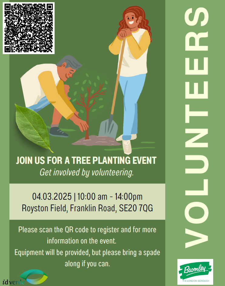 Join Bromley Council, idverde and Cura Terrae to plant trees at Royston Field. Bromley Council were awarded funding from the Local Authority Treescapes Fund (LATF) to plant more trees at selected sites in the borough of Bromley.