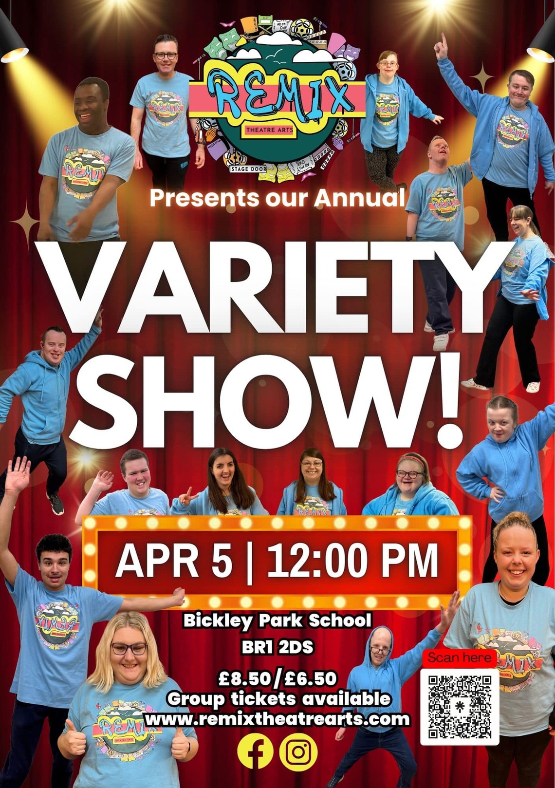 REMIX Theatre Presents their Annual Variety Show on Saturday 5th April, at 2.00pm at Bickley Park School, BR1 2DS.