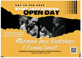 On Saturday 15 February BYMT will be hosting the Jazz School Open Day. Open to all children of grade 3+ standard on any instrument, with workshops, dedicated jazz musicians, performance opportunities. Followed by the evening concert at 7pm with Buster Birch.