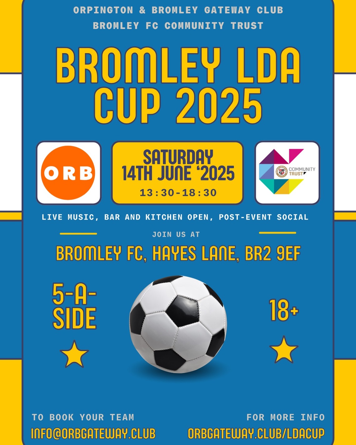 Building on the success of last year’s inaugural tournament, this year’s Bromley LDA Cup aims to bring even more teams, families, and football lovers together for a day of sport, inclusion, and community celebration.