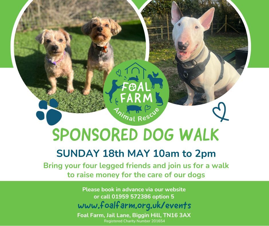 Bring your four legged friends and join Foal Farm for a walk to raise money for the care of their dogs.