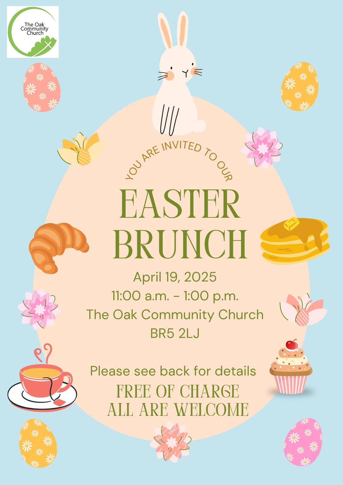 Join The Oak Community Church for food, fun and some Easter treats. It will also include a short talk about the Easter Story.