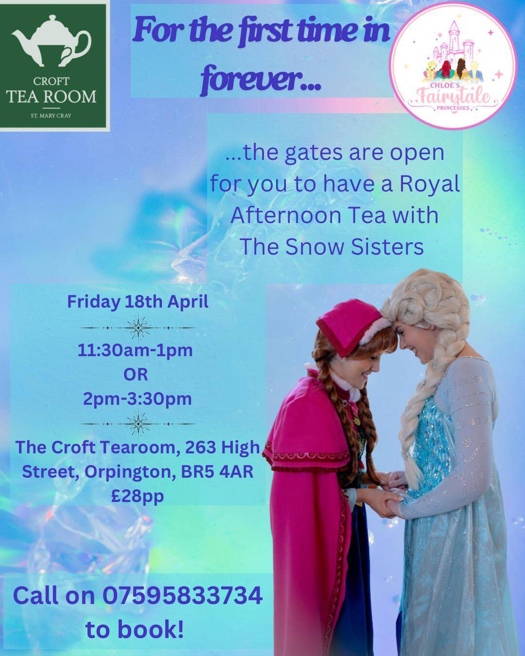 Come along enjoy our Frozen Afternoon Tea and meet the princesses..