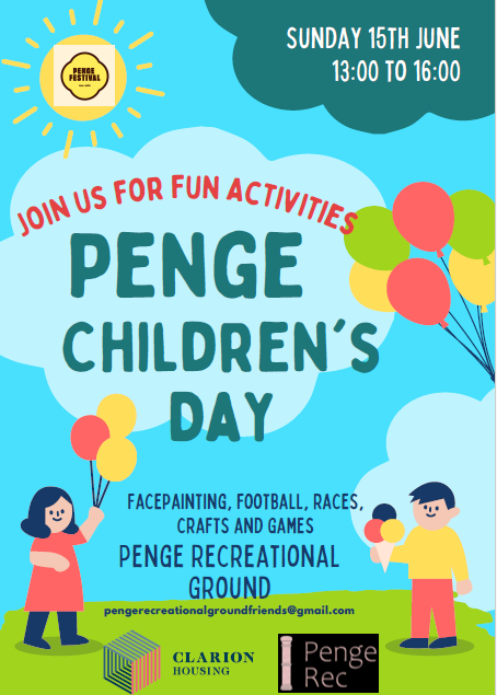 Join Clarion Housing and Friends of Penge Recreational Ground on Sunday 15th June, 1.00 – 4.00pm at Penge recreational Ground for a day if fun activities: facepainting, football, races and crafts and games.