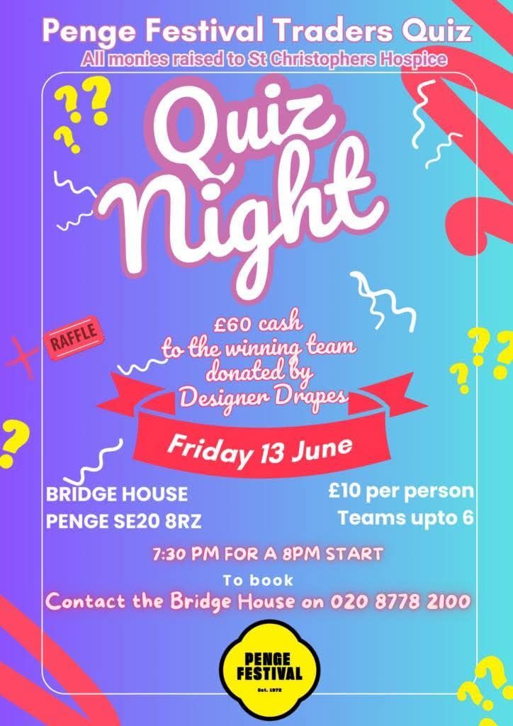 Are quizzes your thing? Don't miss out the traders' quiz on Friday 13th June, 7.30pm at The Bridge House, 2 High St, Penge, SE20 8RZ