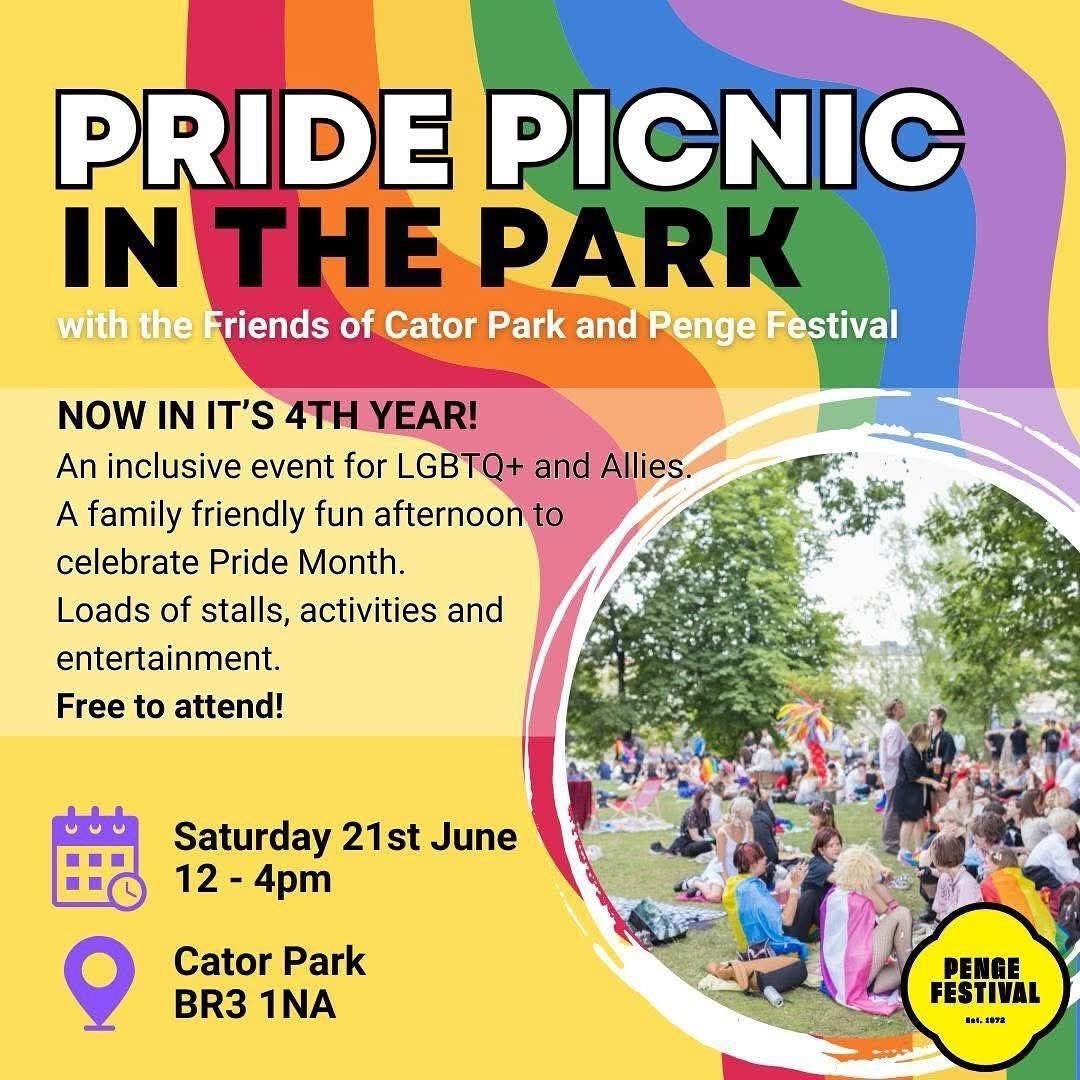 Join Friends of Cator Park and Penge Festival on Saturday 21st June, 12.00 - 4.00pm at Cator Park, BR3 1NA for an inclusive event for LGBTQ+ and Allies.