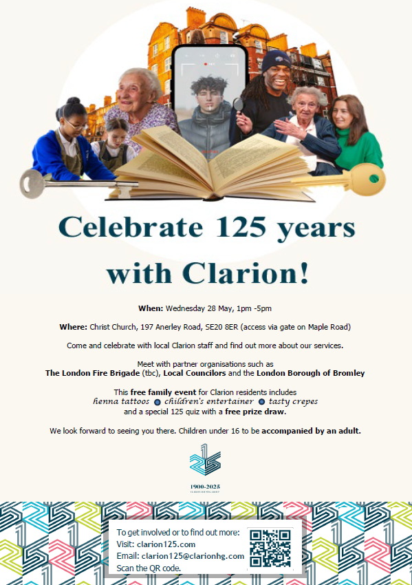 Please note: this event is not delivered by Community Links Bromley. Contact Clarion 125 | Celebrating 125 years of Clarion Housing Group for further information on the event.
