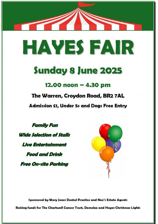 The fair is sponsored by Mary Jones Dental Practice and Neo's Estate Agents, and is raising funds for The Chartwell Cancer Trust, Demelza, and Hayes Christmas Lights.