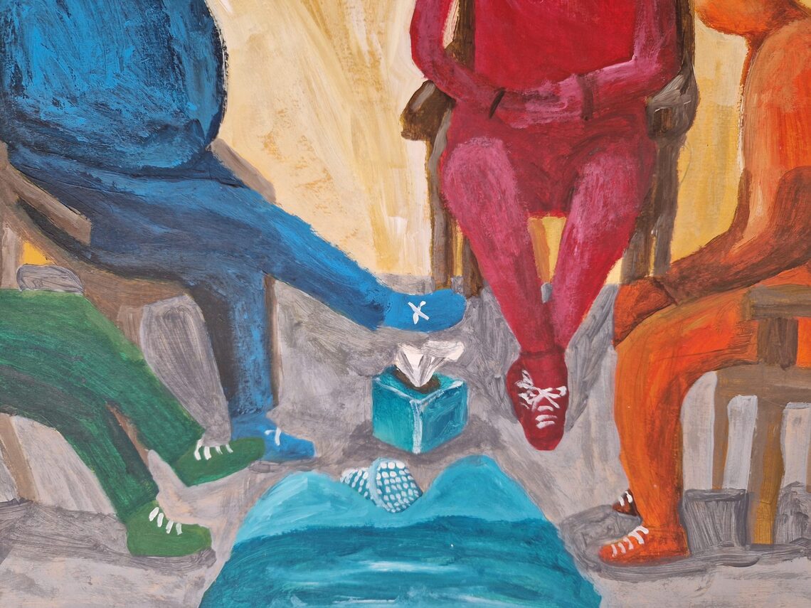 Mud’s first major solo exhibition begins with an assertion: ‘I AM ALIVE’. It is at once an affirmation and a realisation. Their artistic and personal journey of transformation is rendered in forms that utilise a variety of media and material. These include figurative and textual paintings, sculptural and spatial works, and risograph-printed zines.