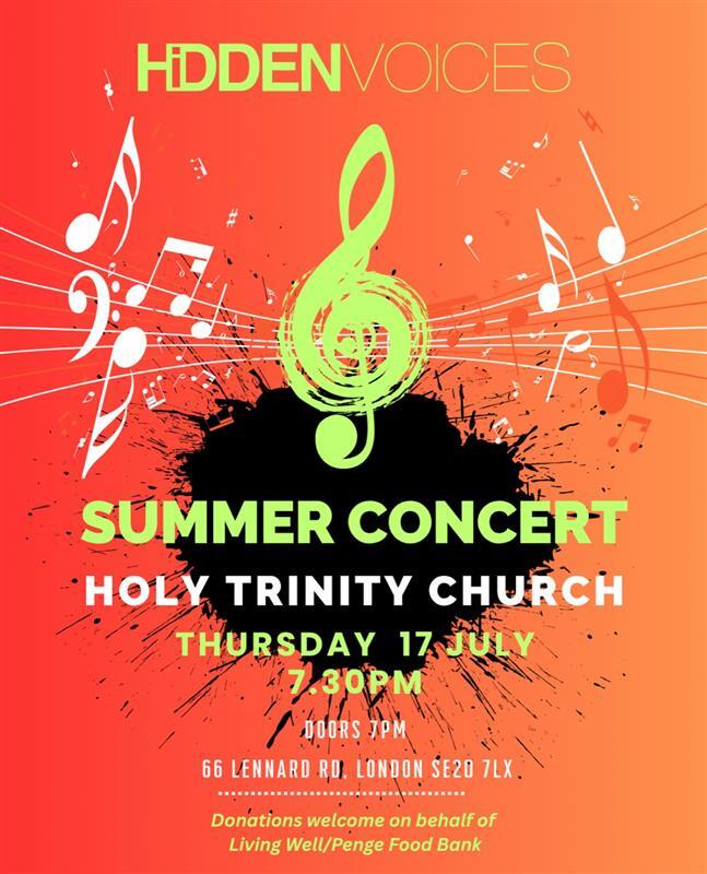 By popular demand the Hidden Voices Choir are back for their traditional Summer Concert in support and celebration of Living Well Bromley. Join them at Holy Trinity Church in Penge for a night of musical sunshine to lift your spirits and leave you humming all the way home.