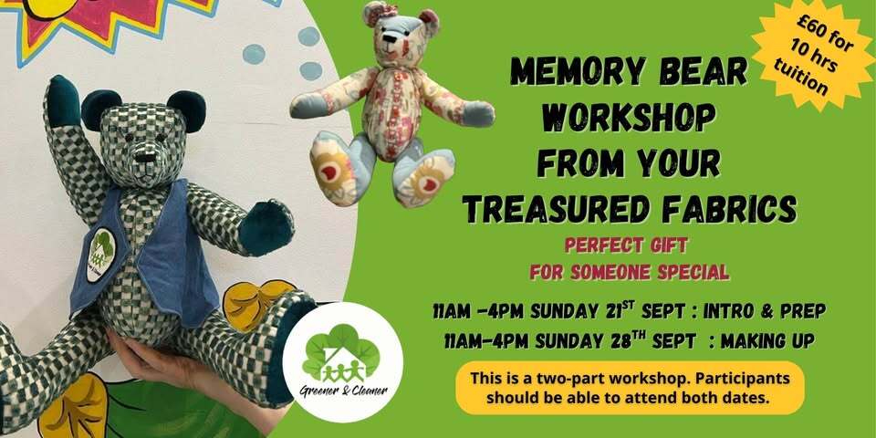 Join Greener & Cleaner to learn to make a memory bear from your treasured fabrics at The Hub, located in The Glades, Bromley.