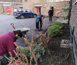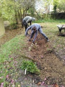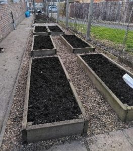 One of the first tasks for the trainees in the autumn of 2021 was clearing and preparing the soil for hedge planting on the green and around the vicarage boundary. The trainees have developed the Kitchen Garden which now has 16 planting areas. This will provide food for Mottingham Foodbank, also based at St. Edward's.